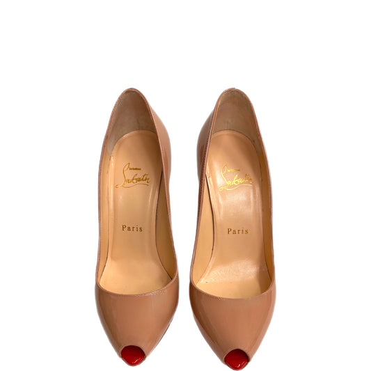 CHRISTIAN LOUBOUTIN Patent Leather Peep Toe Pumps Nude Size 36