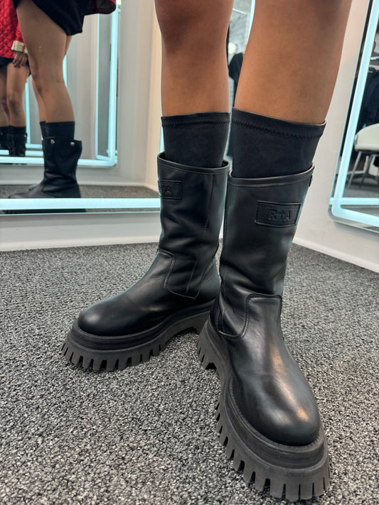 RED VALENTINO Tall Leather Wedge Boots Black Size 35