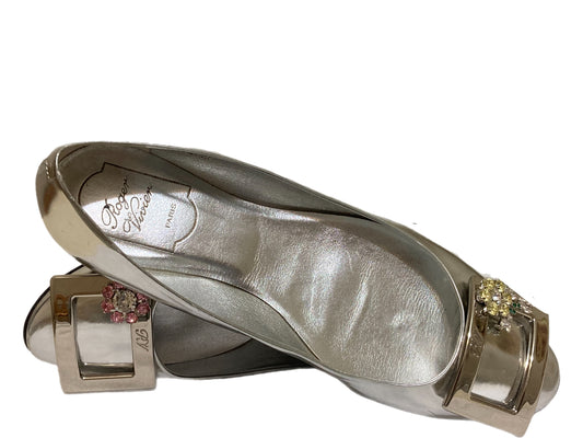 ROGER VIVIER Leather Metallic Flats Silver Size 39