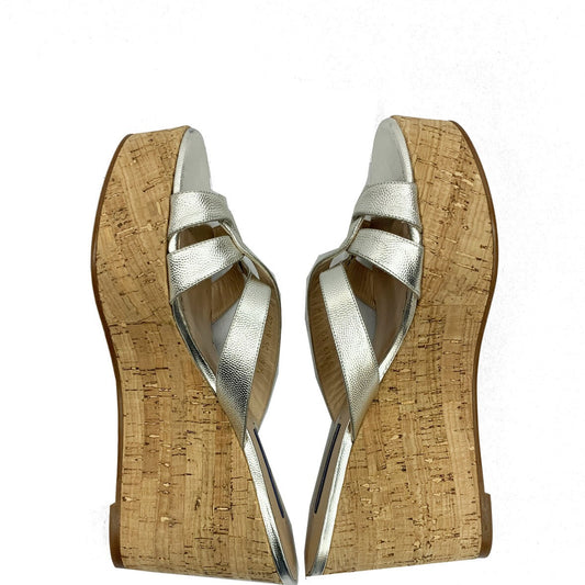 STUART WEITZMAN Silver Metallic Wedges Size 9