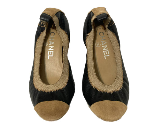 CHANEL Leather Ballet Pumps Black / Tan Size 35.5