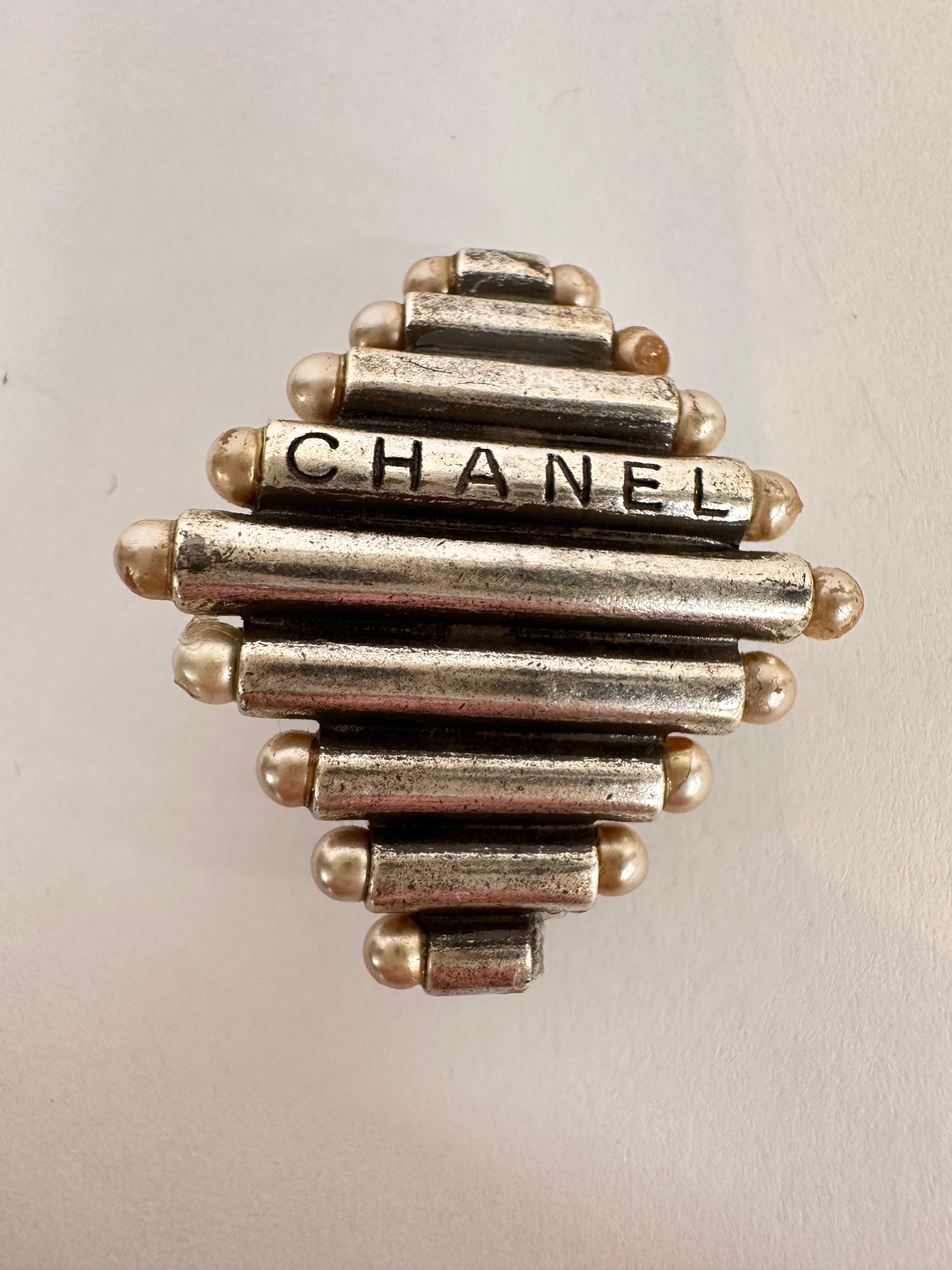 - Silver bars with tiny pearls in a diamond shape