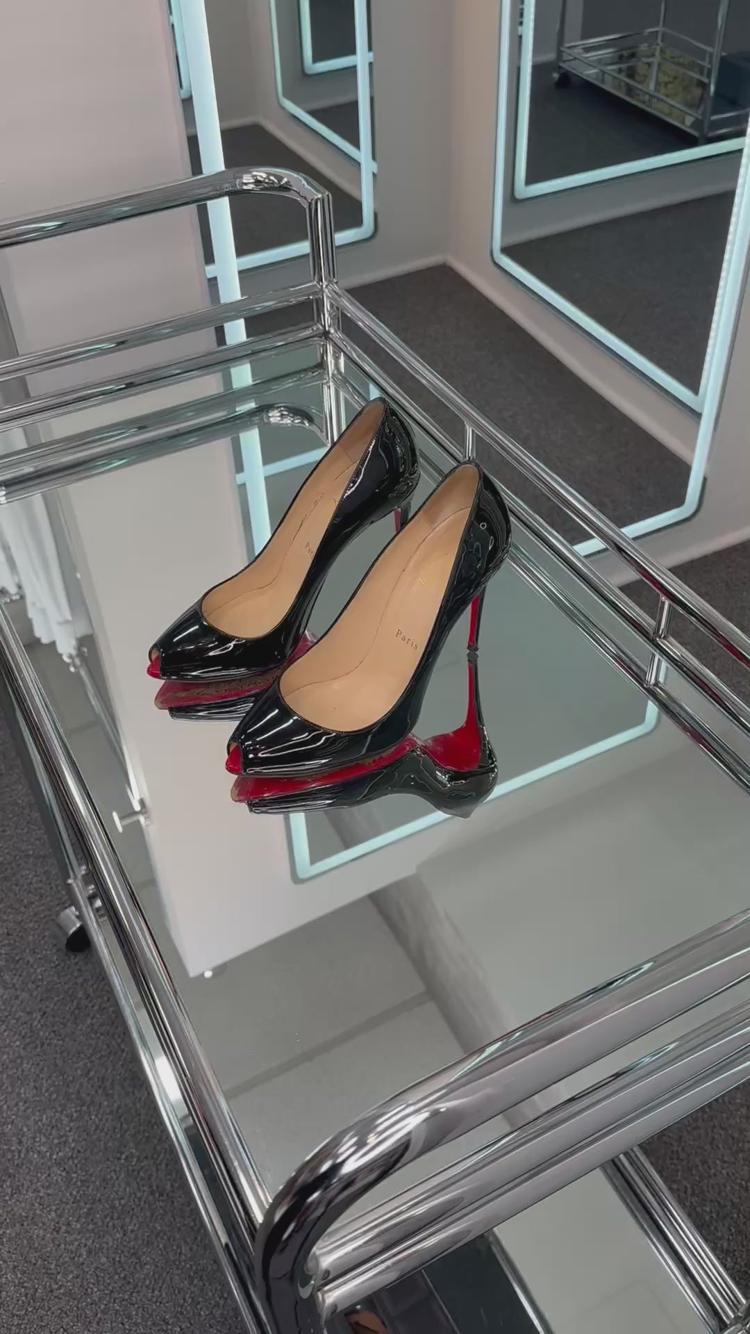 - Good Condition, right shoe red lining of heel needs to be glued, scratch on the exterior stiletto, light marking on exterior of right shoe