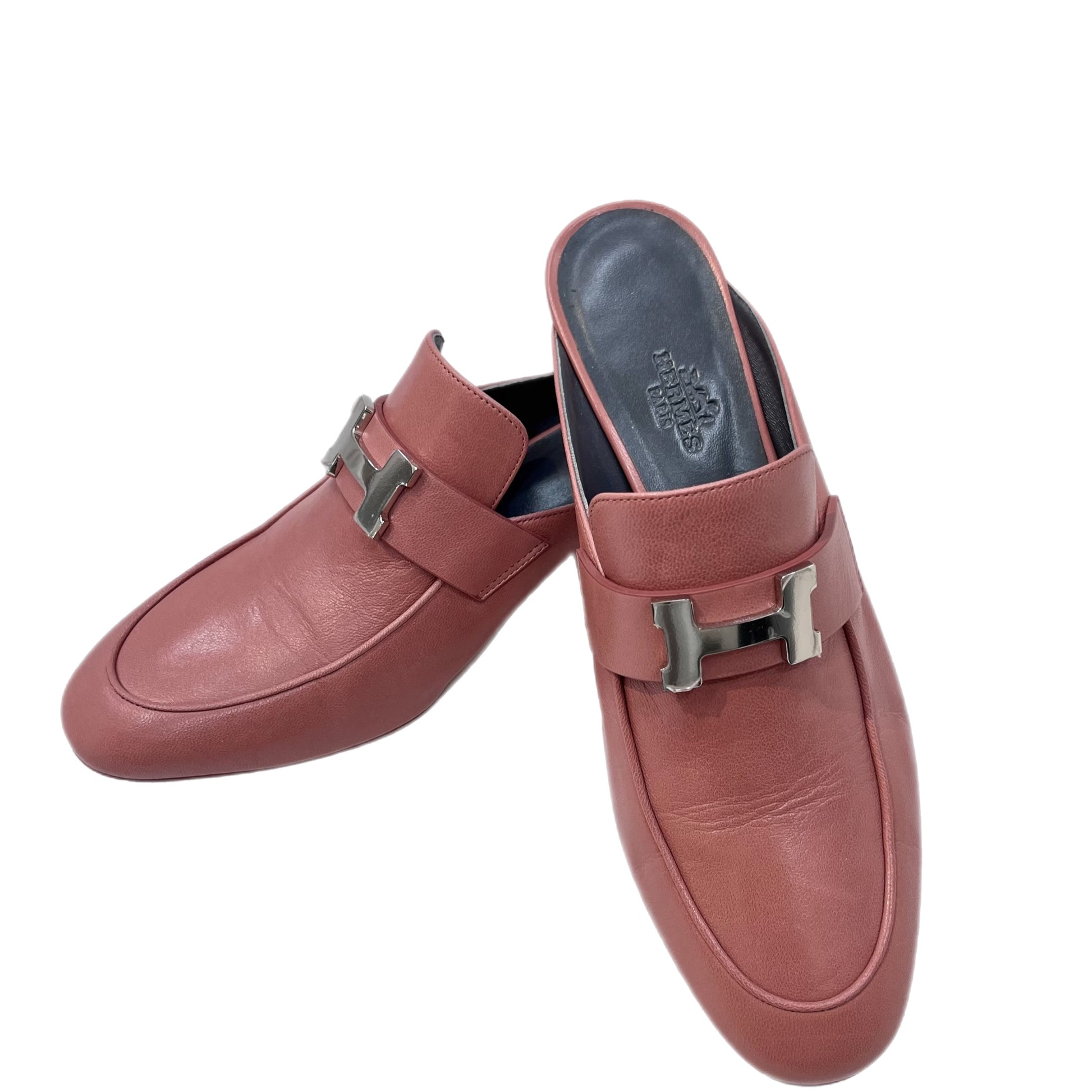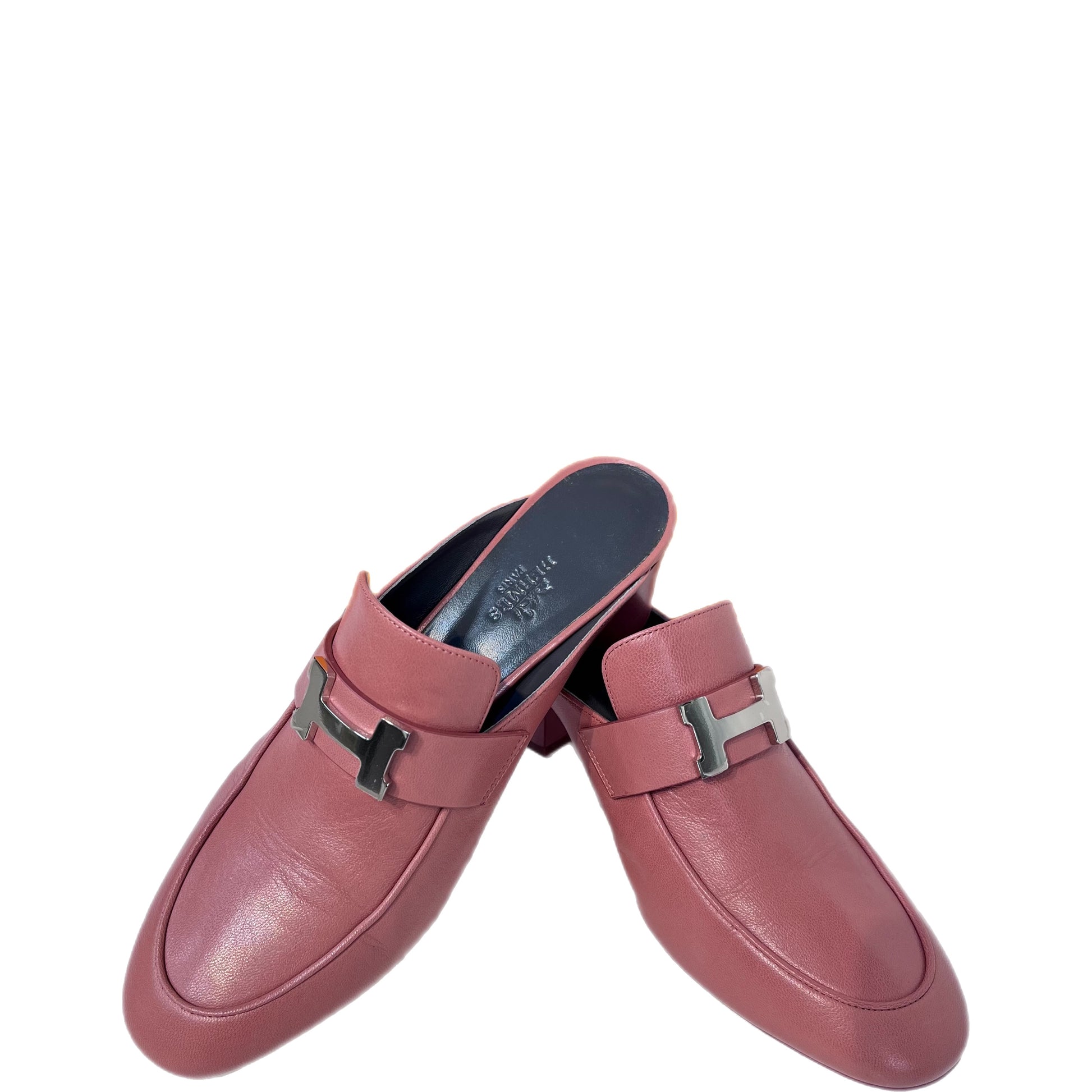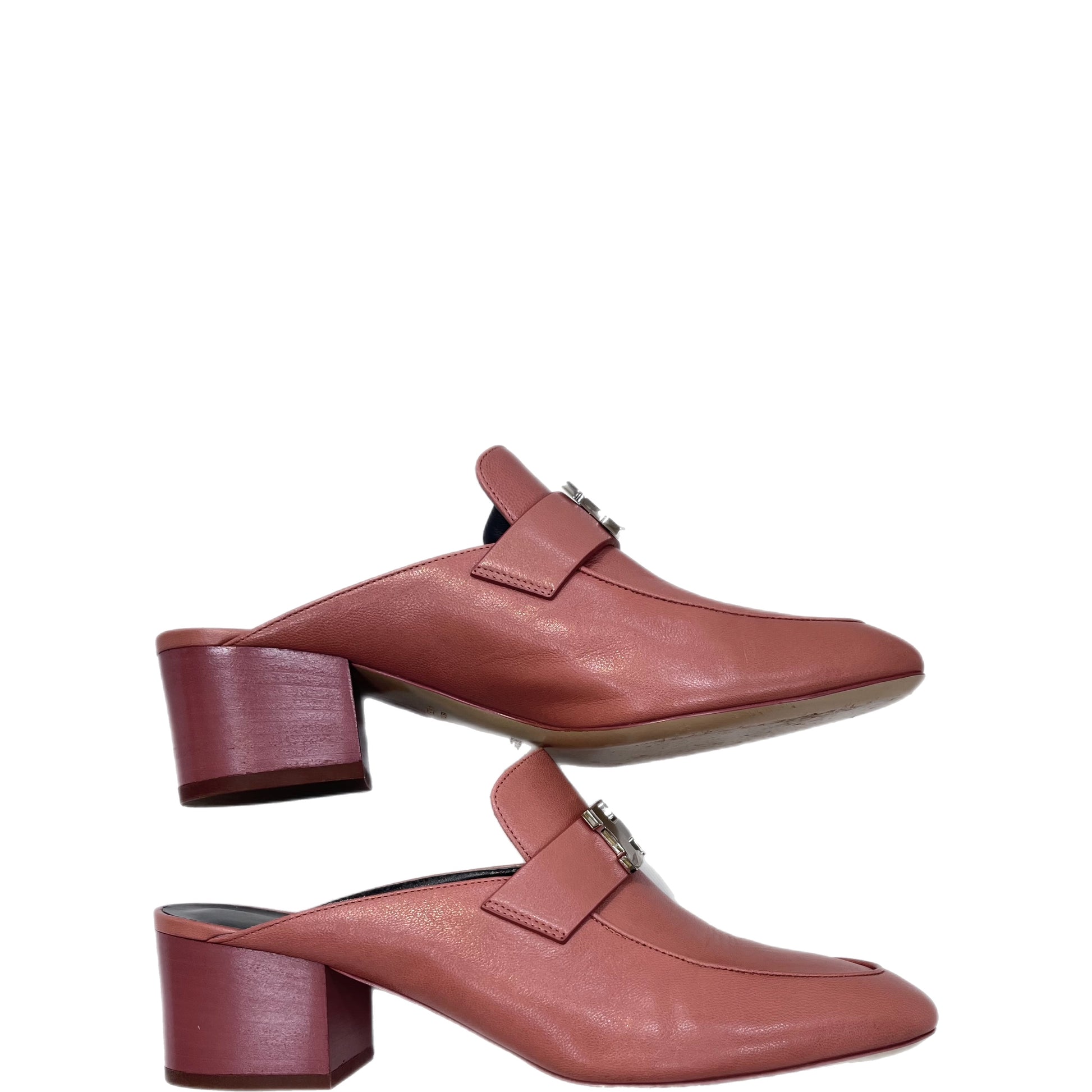 - Mule in goatskin with contrasting lining and permabrass plated signature "H" detail