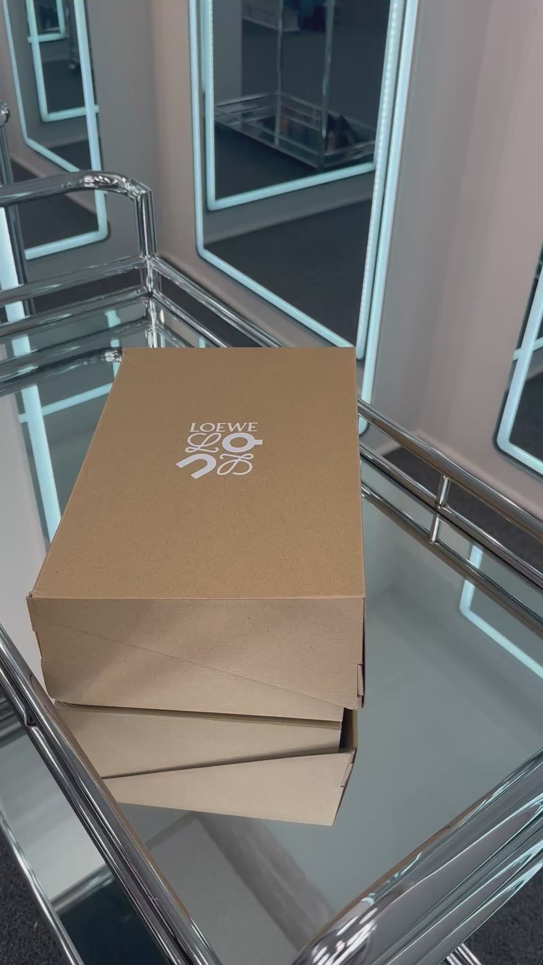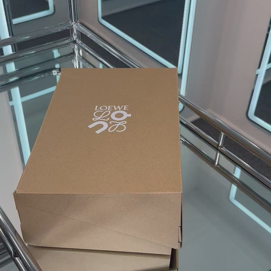 - White mesh and recycled plastic, speed laces with toggle, slip on, Loewe/ON logo on the side, foam sole, rubber platform