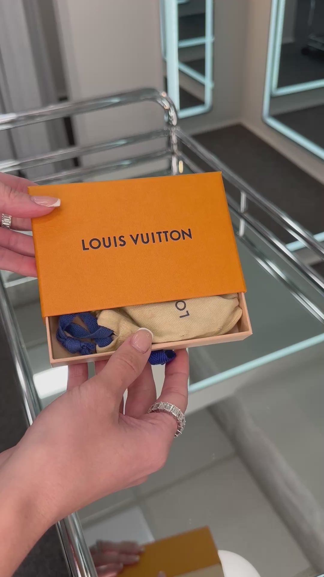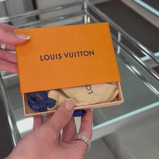 - Damier Azur front with animation, fuschia back, gold-tone hardware