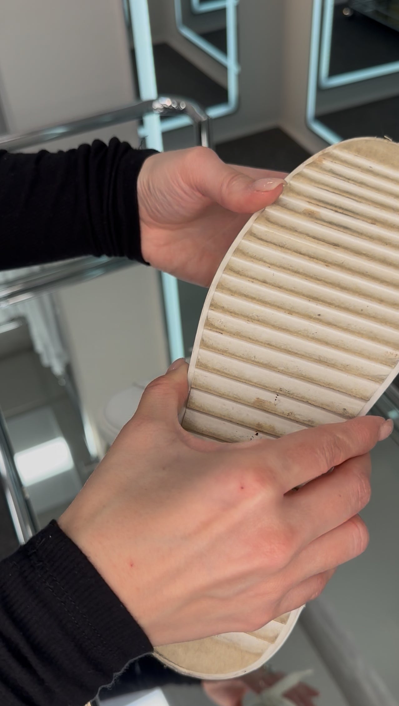 - Great Condition, some staining on laces, some light staining on the platform, light scuff on tip of the left sneaker, some creasing in the leather, light pink interior stain on the right shoe