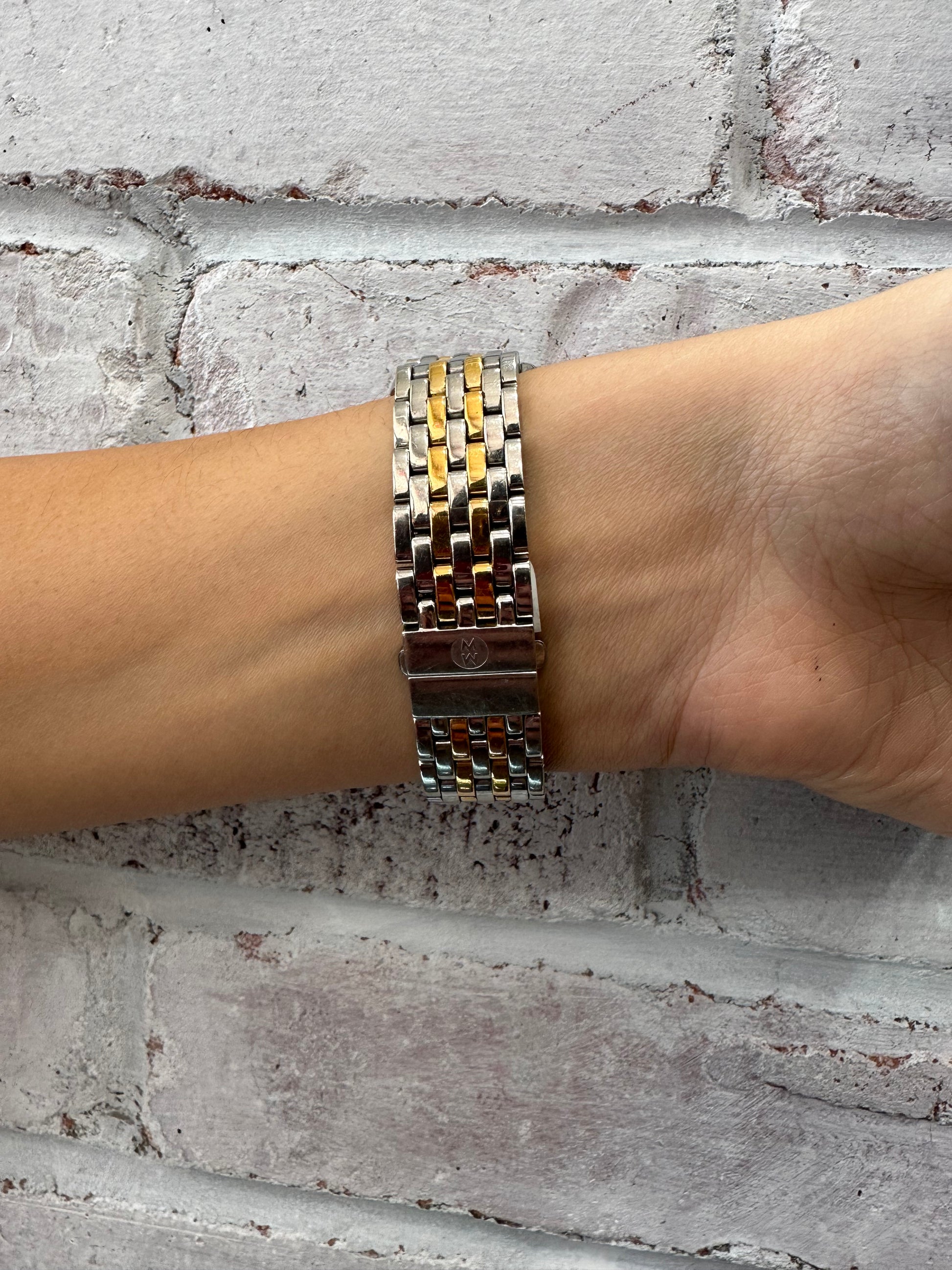- 18K yellow gold and stainless steel, quartz movement with chronograph & date complications, diamond bezel, mother of pearl dial, butterfly clasp