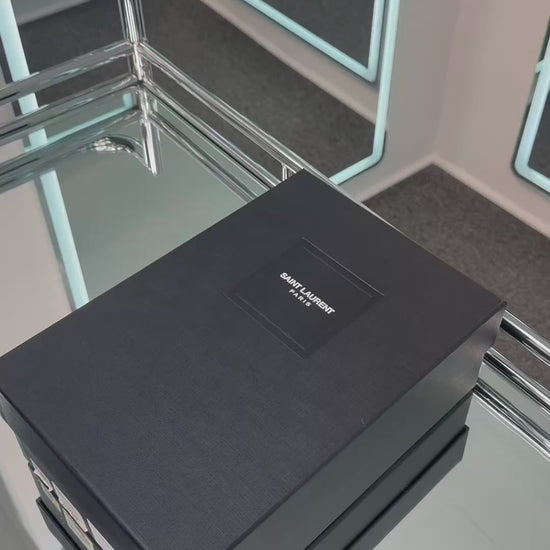 - Blue leather with a color block black pointed toe, stilettoes heel